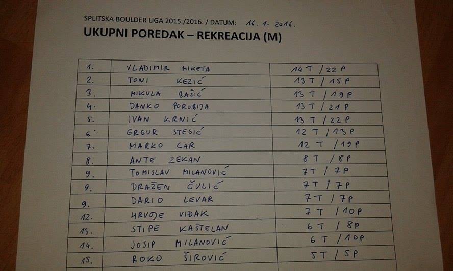 Prijavne liste su bile pune, nije bilo mista za zagrijat se, a skoro je zafalilo čak i Zlodrinog meda! Forte ovog kola su definitivno bili postavljači koji su ponudili urban & moderan bouldering sa istančanom dozom starog dobrog old schoola koji nije trpia opuštanje čak i u najlakšim detaljima ali je ostavia upečatljiv dojam koji se ne zaboravlja!