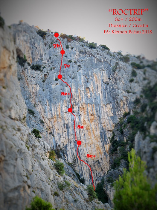 Klemen Bečan je ovog ponediljka u Drašnicama popea Roctrip i itnia je na stol ocjenu, prvu takve težine u Dalmaciji - 8c+! Bog te blagoslovia Bečko!