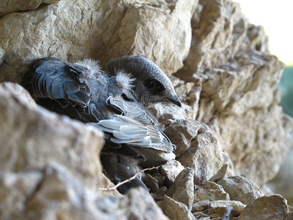 Već drugi dan za redon nailazimo na tiće šta ih je DVT izbacija iz gnjezda ili ih je u prvom letu zakuca u stinu. Na Gredi se vodi borba za goli život ...