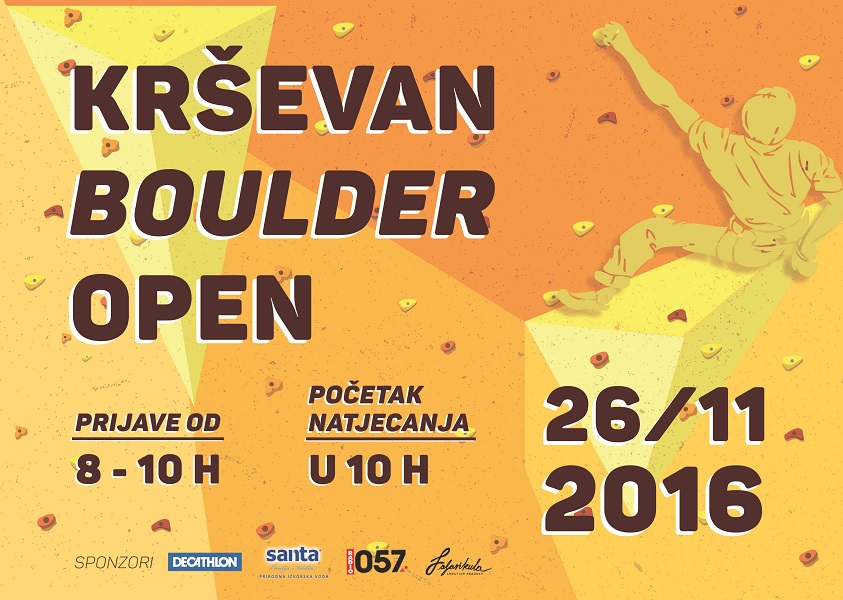 Krševan Boulder Open ponovo ruši server u terminu 26.11.2016.! Glavne naznake su da su prijave poželjne do 24.11., da je Marulov kreativac Frane Čulić još jednom glavni postavljač natjecanja, te da je kotizacija 50kn. Uz ovo evo par prigodnih riči organizatora: