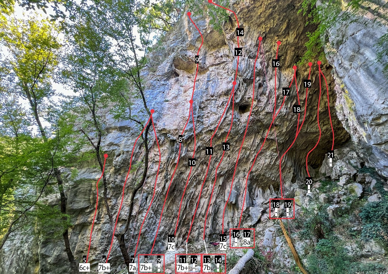 Penjačko lito u našem kraju je obilježia teški uprise novog - starog penjališta Javornica na Cetini u blini Omiša.Javornica sa ekstenzijama broj skoro 25 linija, težine do 8a, a većinu ih možete vidjeti na donjoj skici. S obzirom da je sada sami kraj sezone, nije nam priša, ali za sljedeću ćemo se potruditi da imate kompletan vodič u našem folderu penjališta.