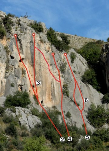 Naši Poskoci su se malo prošle, a malo ove sezone - uvatili potencijala stupa desno od klasika Devil´s cave i vrime je da vam predstavimo tri nova smjera u tom dilu stine:Grizibus (7b+), 30m - na skici br.3 - odlična linija, klasični trogirski stil koji traži čvrste prste, nešto uvjeta ali i da skužite betu u detalju koja nas neodoljivo podsjeća na nebuloze Markezine grede.