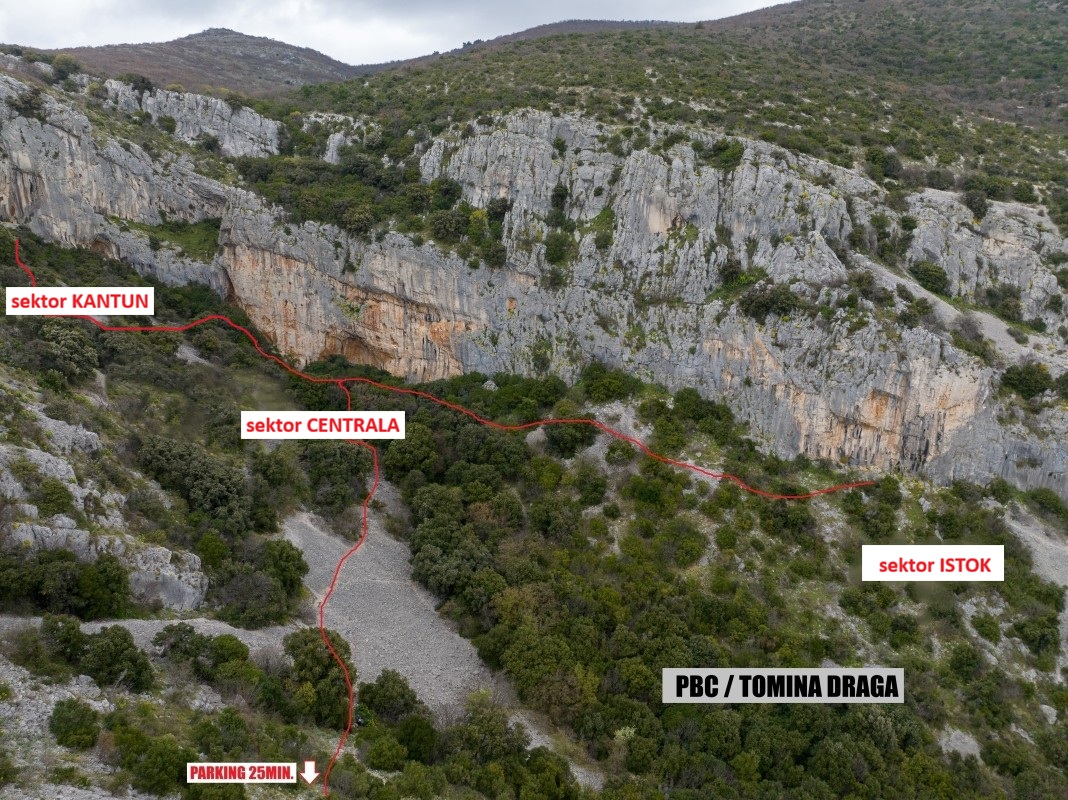 Penjalište se smjestilo u području Kaštel Štafilića, u kotlini poznatoj kao Tomina draga, a među penjačima i pod imenom PBC koje je krenulo od našeg prijatelja Stiva kao kratica za Polar Bear Crag.