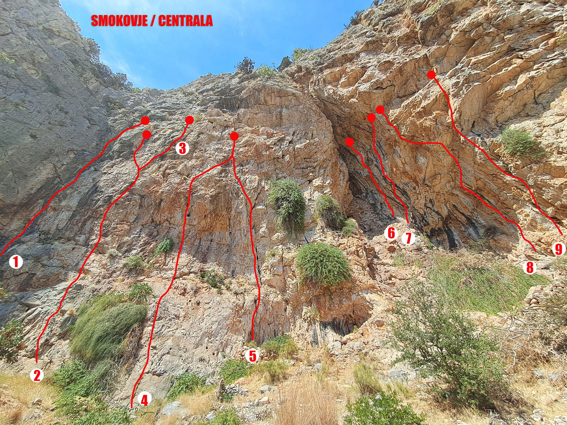 Sektor CENTRALA: 1.Projekt (?),22m / 2.Prljavi ples (6c),20m / 3.Prljavi Harry (6c+), 22m / 4.Pramenka (7a), 22m / 5.Iron sky (6c+),20m / 6.Venga Ramon (6b),12m / 7.Nemoguća misija (6c+),15m / 8.Bogondon (7b+),12m / 9.Jestofunk (7a+),15m