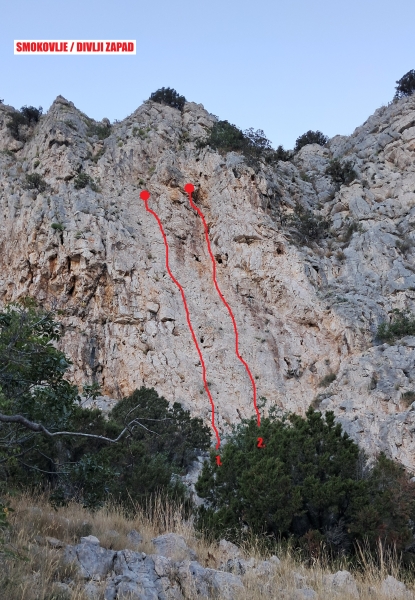 Sektor DIVLJI ZAPAD: 1.Nepomirljiv (6b),25m / 2.Bik koji sjedi (6a),25m